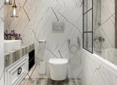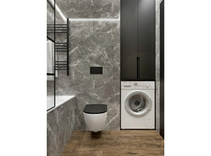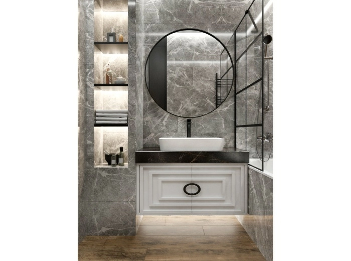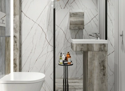 — Крупноформатная плитка. Вы получите меньше швов и визуальное расширение помещения.